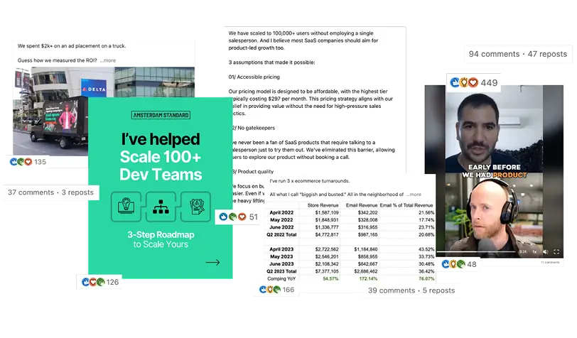 A strong CEO brand opens doors. Podcast invitations, speaking opportunities, inbound from ideal buyers, warm intros from your network, higher response rates on outreach. Your CEO’s content becomes a magnet for the opportunities that influence pipeline and enterprise deals.